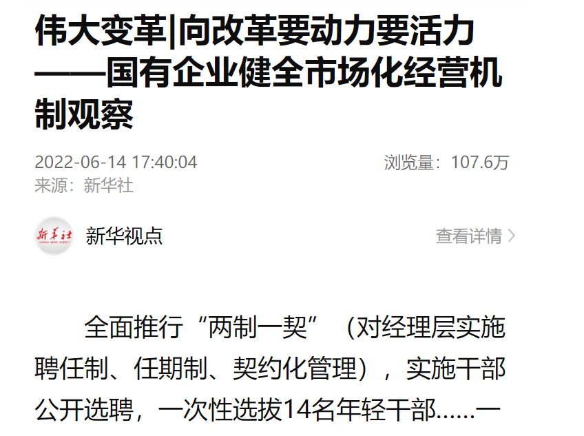 国企刷新三年行动实验以来,国资国企系统在健全市场化谋划机制方面按下“加速键”,其中三项制度(劳动、人事、分派制度)刷新成了“牛鼻子”。