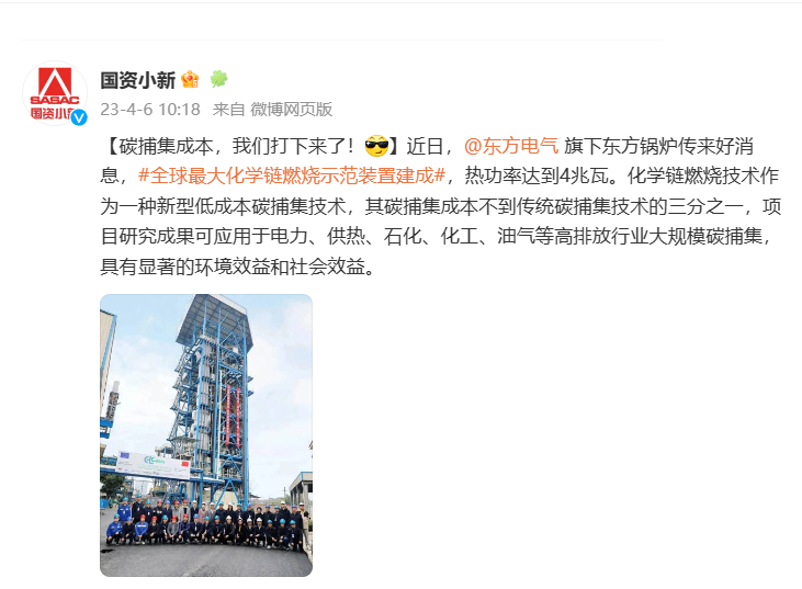 [国资小新]碳捕集本钱,我们打下来了!