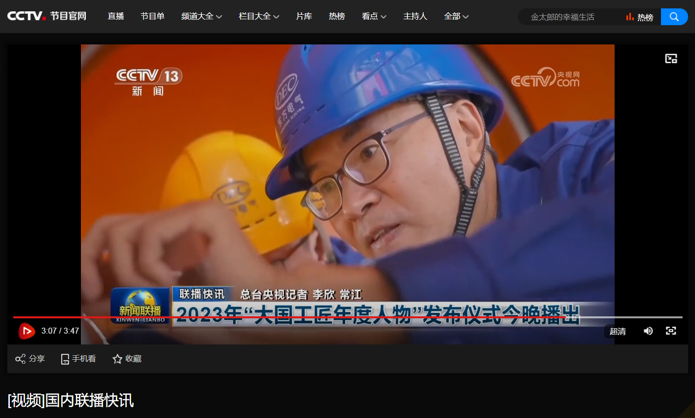 [央视新闻联播]2023年“大国工匠年度人物”宣布仪式今晚播出