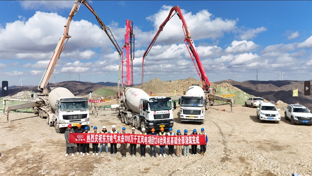 克日,随着全场施工难度最大的E092风机基础最后一方混凝土浇筑完毕,ag百家家乐木垒100万千瓦风电项目完成124台风机基础浇筑,标记着项目土建事情周全完成,主体工程周全进入装备装置冲刺阶段,为年内建成涤讪了坚实的基础。