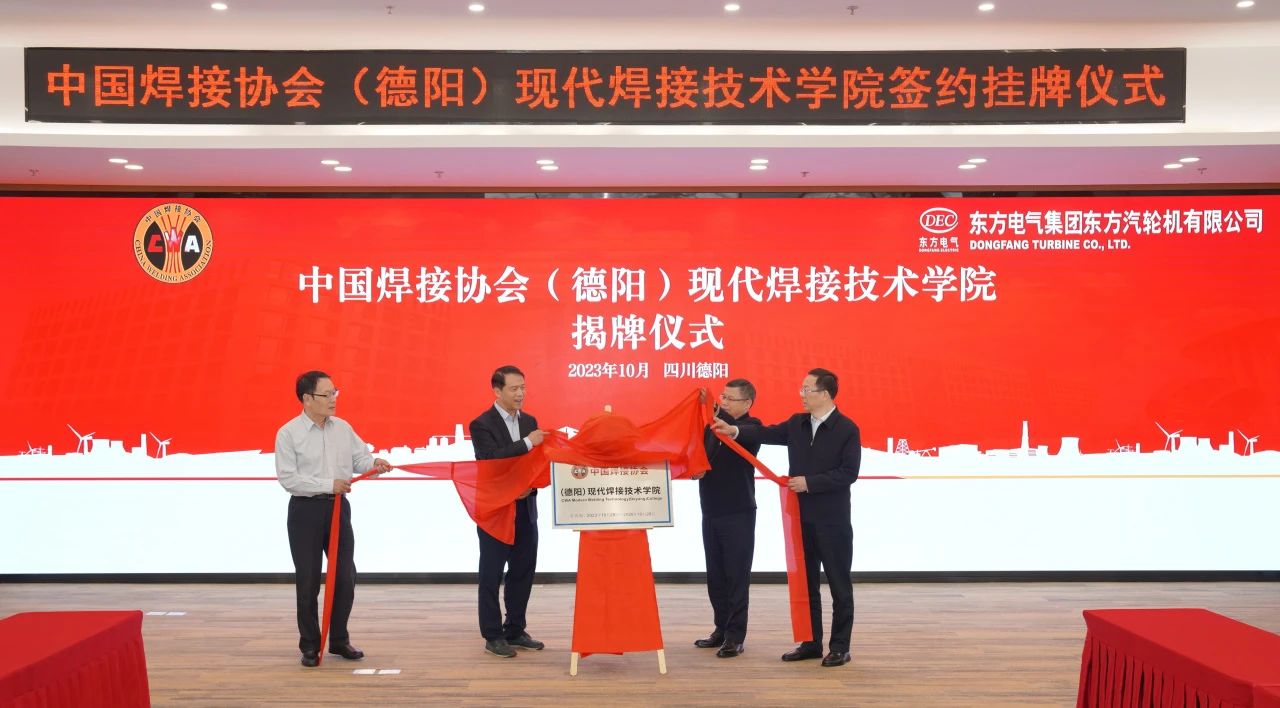 31日,中国焊接协会(德阳)现代焊接手艺学院签约及挂牌仪式在ag百家家乐集团东方汽轮机有限公司举行,中国焊接协会副会长兼秘书长李连胜、副秘书长吴九澎,ag百家家乐集团总司理助理、组织人事部部长、党校校长曾小平,东方汽轮机党委书记、董事长刘辉配合为“中国焊接协会(德阳)现代焊接手艺学院”揭牌。中国焊接协会与东方汽轮机签署了合作协议。