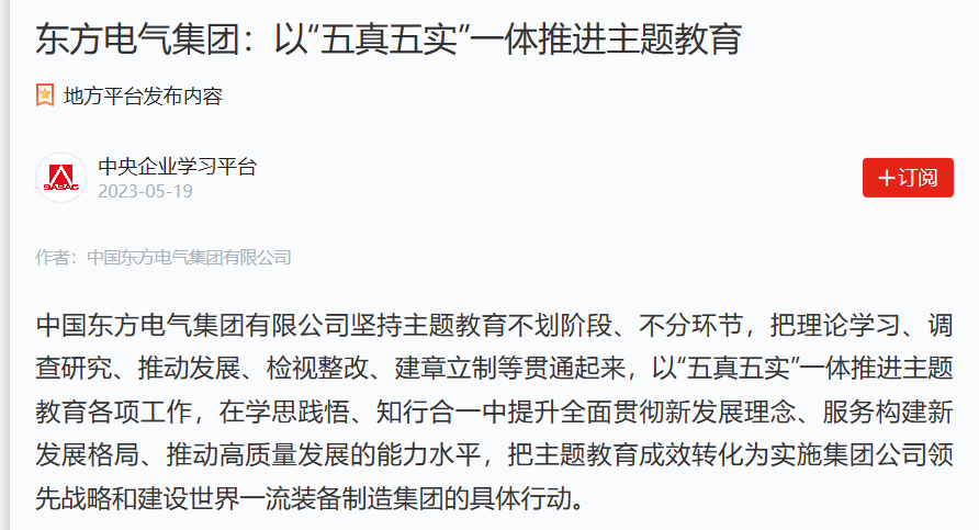 集团旗下东方电机策划并张榜红色沙龙、红色家信、红色故事分享等八个“揭榜领办”使命,招呼有能力、有实力的下层党组织团结公司要求,找准党建与中心事情融合点,起劲“揭榜”,自动“领办”,推动主题教育越爆发动鲜活、越发富有效果。东方锅炉把主题教育红色研学课堂搬到“中国革命的摇篮”井冈山,通过专题讲座、现场教学、情景体验和钻研交流等方法,把书籍学、实践学、现场学意会起来,起劲在以学铸魂、以学增智、以学正风、以学促干方面取得实着实在的效果。东方物产充分使用主题教育8种学习质料组织开展向导干部带动学、党群纪检职员自动学、先进小我私家引领学的“三个先学”念书活动,扎实开展理论学习。
